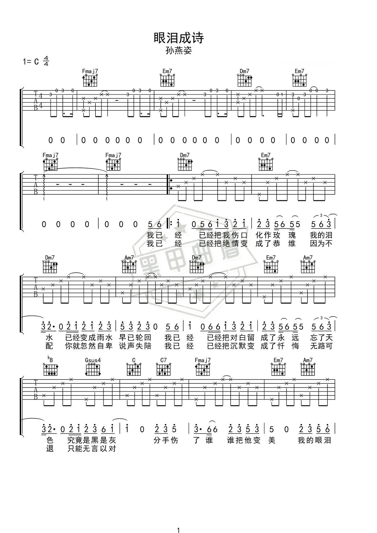 以下是吉他简谱《眼泪成诗》C调弹唱谱曲谱的部分内容以及网友对歌曲的评价哦,喜欢的朋友关注我们获得完整的曲谱!