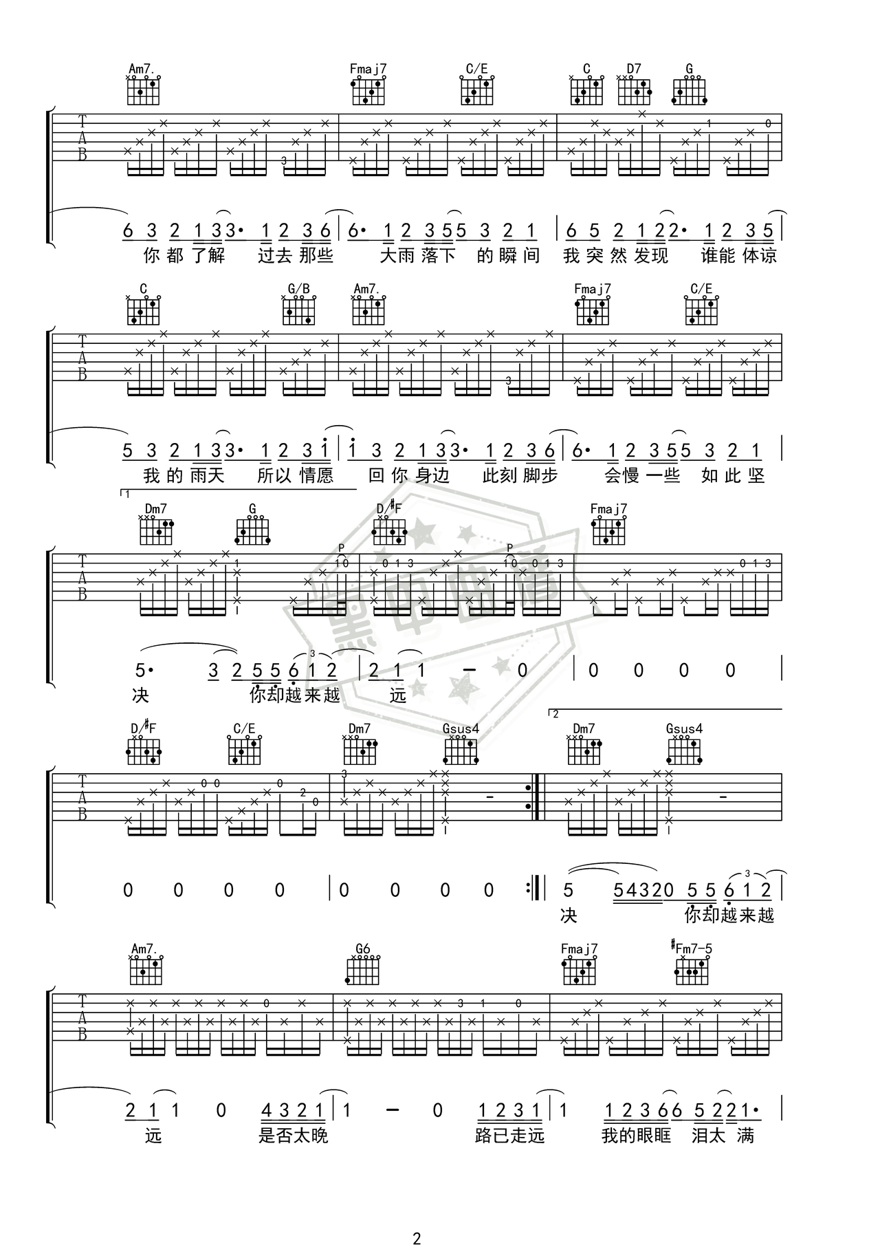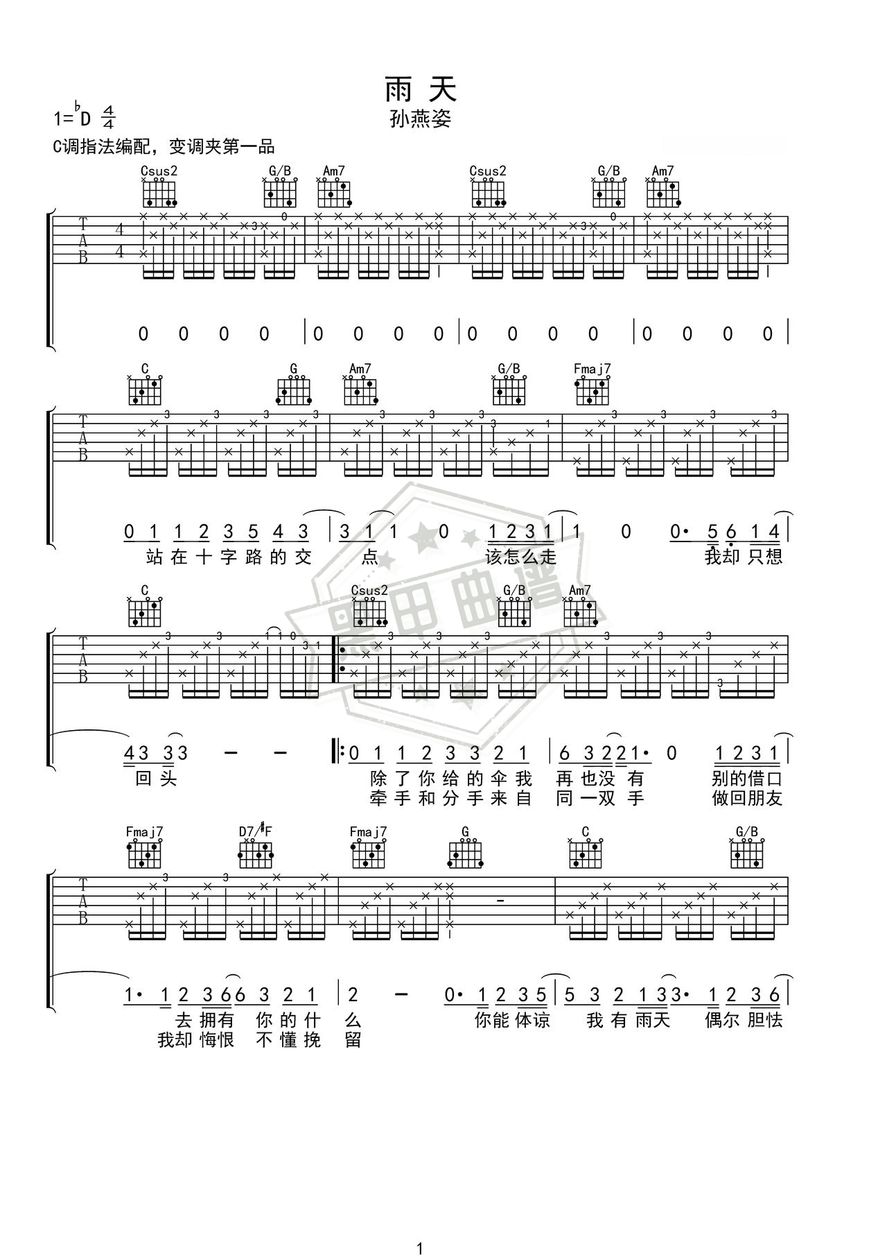 以下是吉他简谱《雨天》C调弹唱谱曲谱的部分内容以及网友对歌曲的评价哦,喜欢的朋友关注我们获得完整的曲谱!