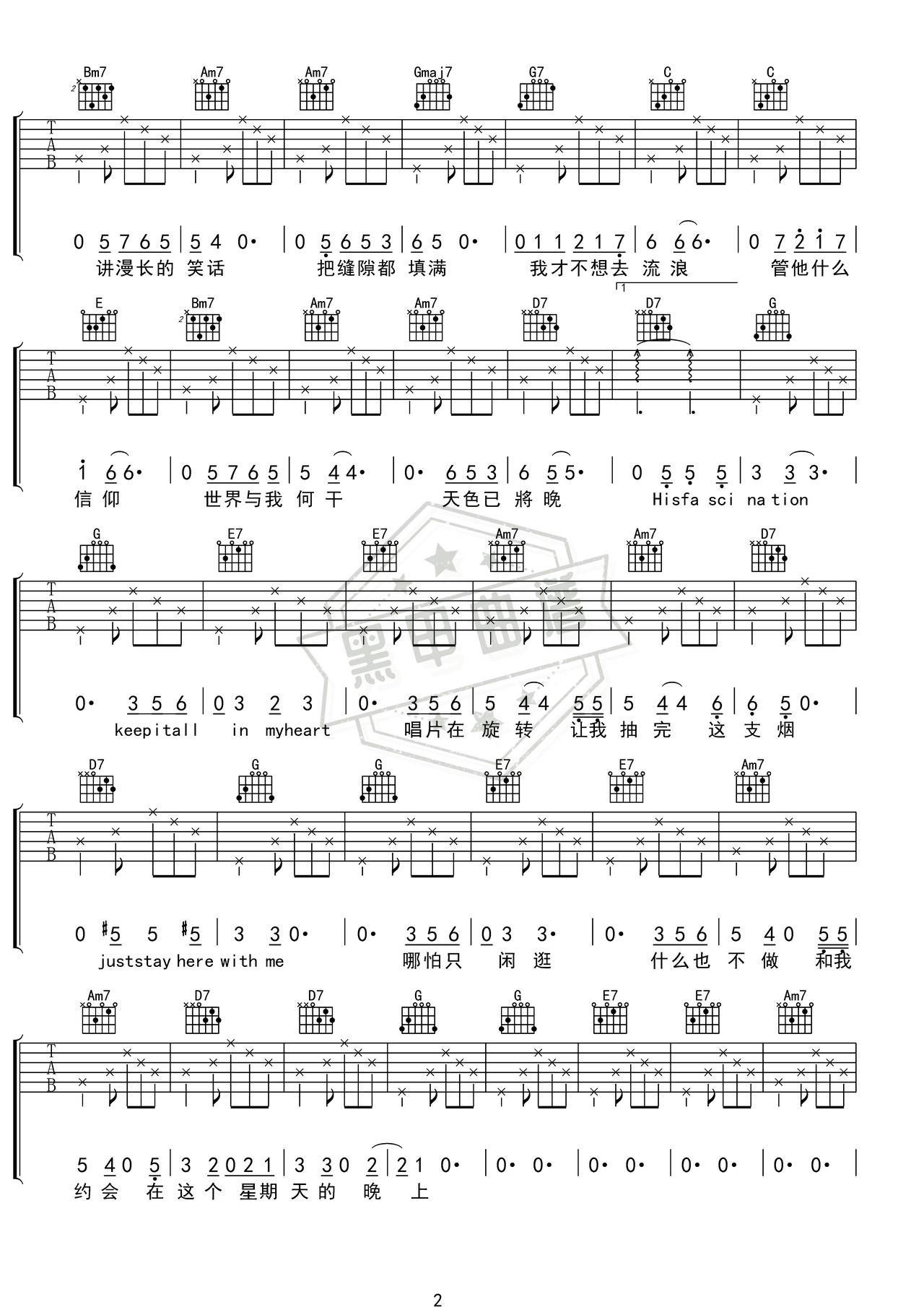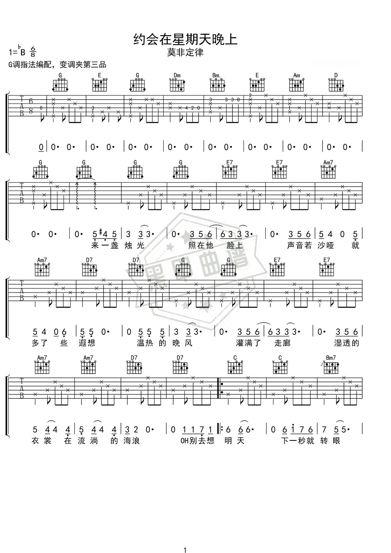 约会在星期天晚上_吉他谱: