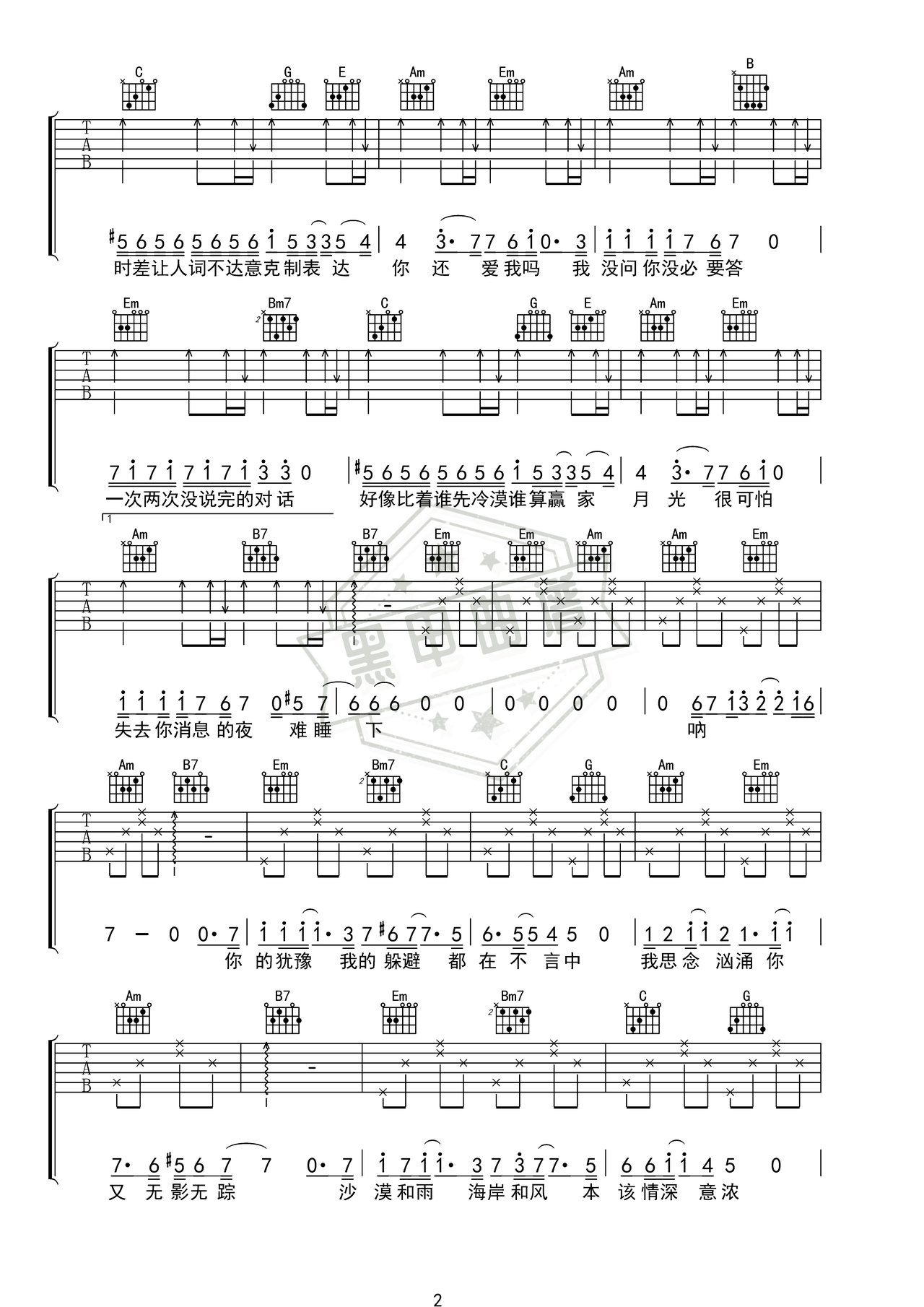 时差_吉他谱: