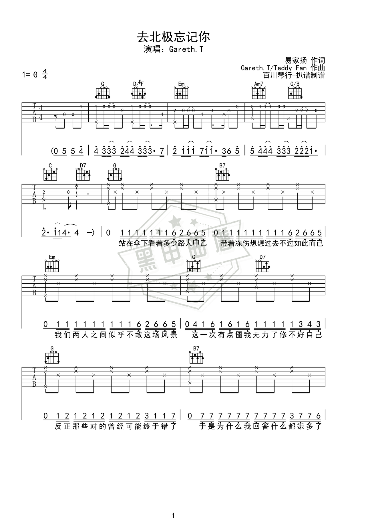 去北极忘记你_吉他谱: