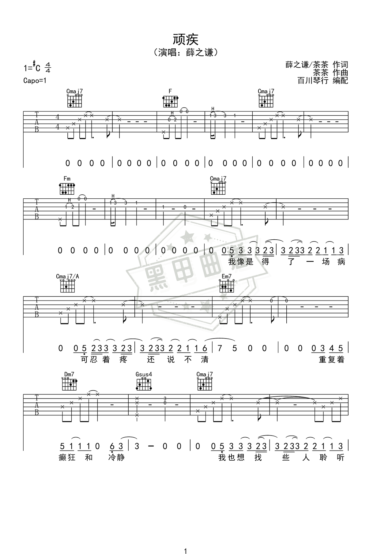 以下是吉他简谱《顽疾》C调弹唱谱曲谱的部分内容以及网友对歌曲的评价哦,喜欢的朋友关注我们获得完整的曲谱!
