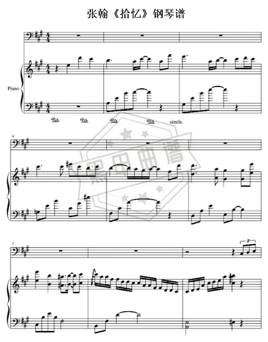 以下是钢琴五线谱《拾忆 (怎么会忘了情)》A调演奏版曲谱的部分内容以及网友对歌曲的评价哦,喜欢的朋友关注我们获得完整的曲谱!