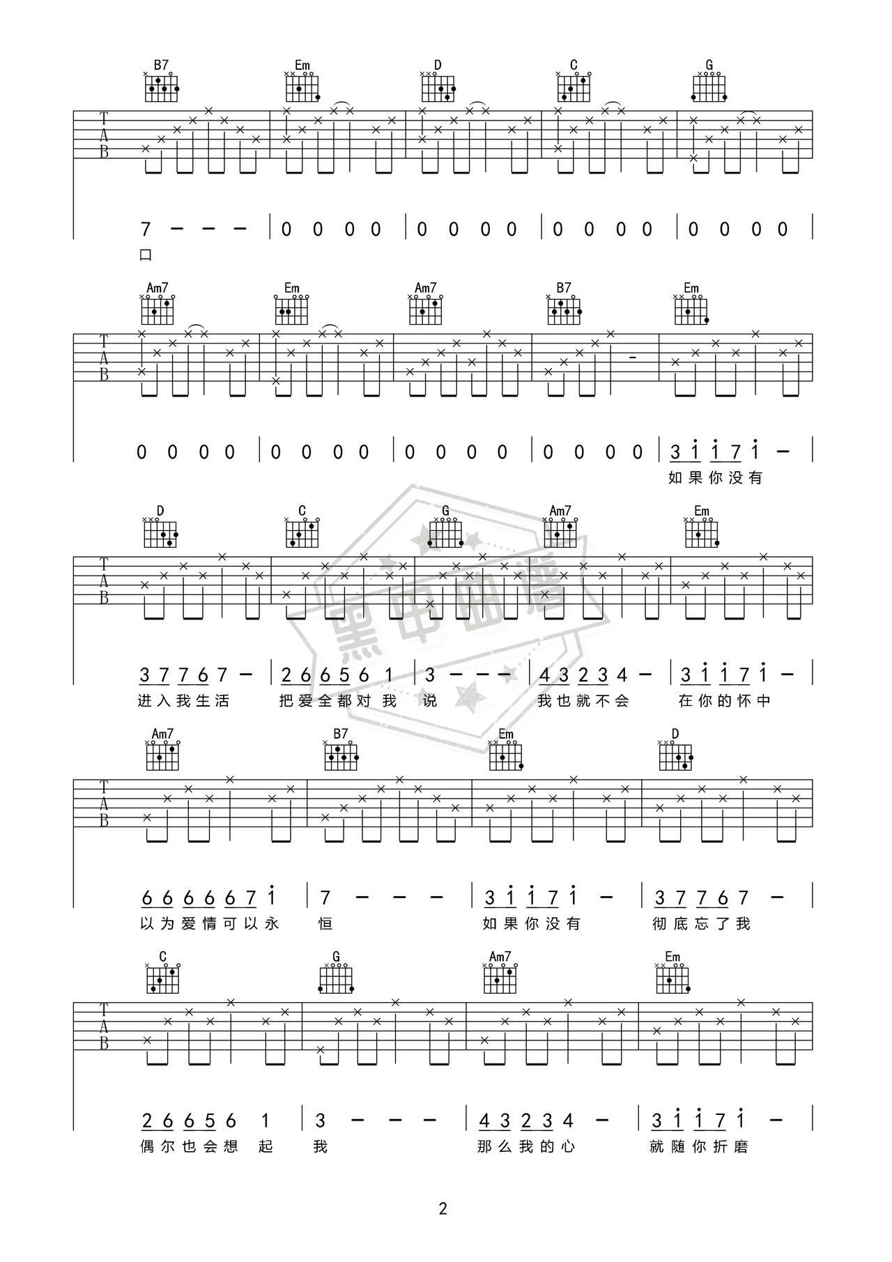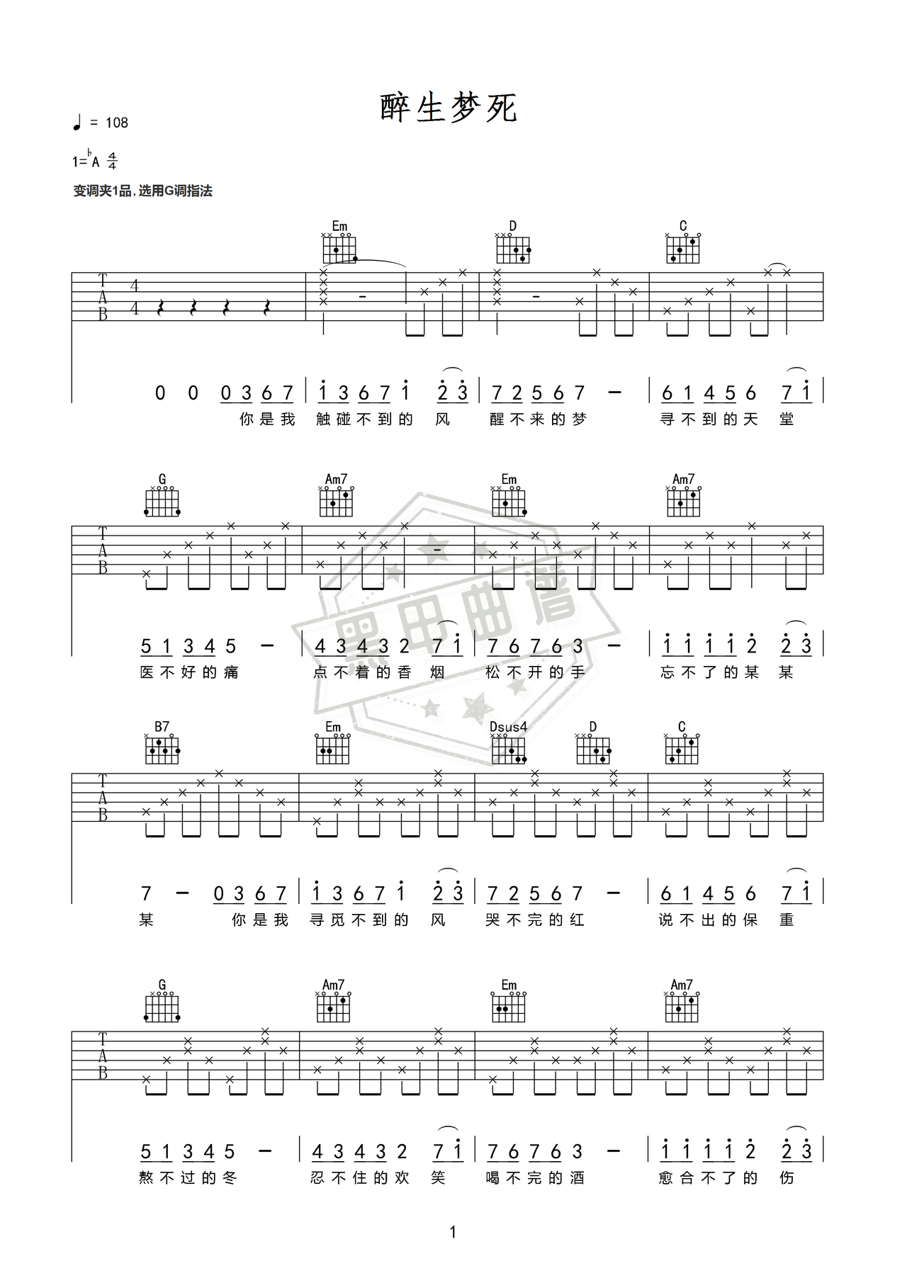 醉生梦死_吉他谱: