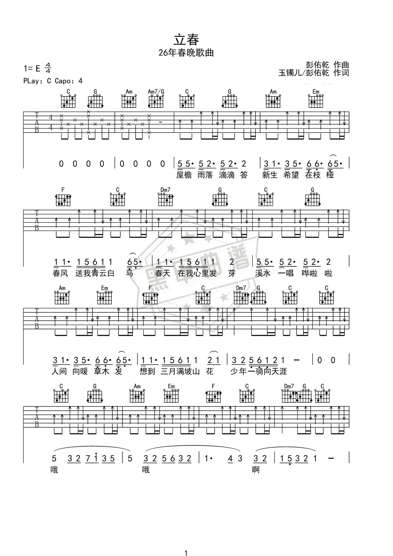 立春_吉他谱: