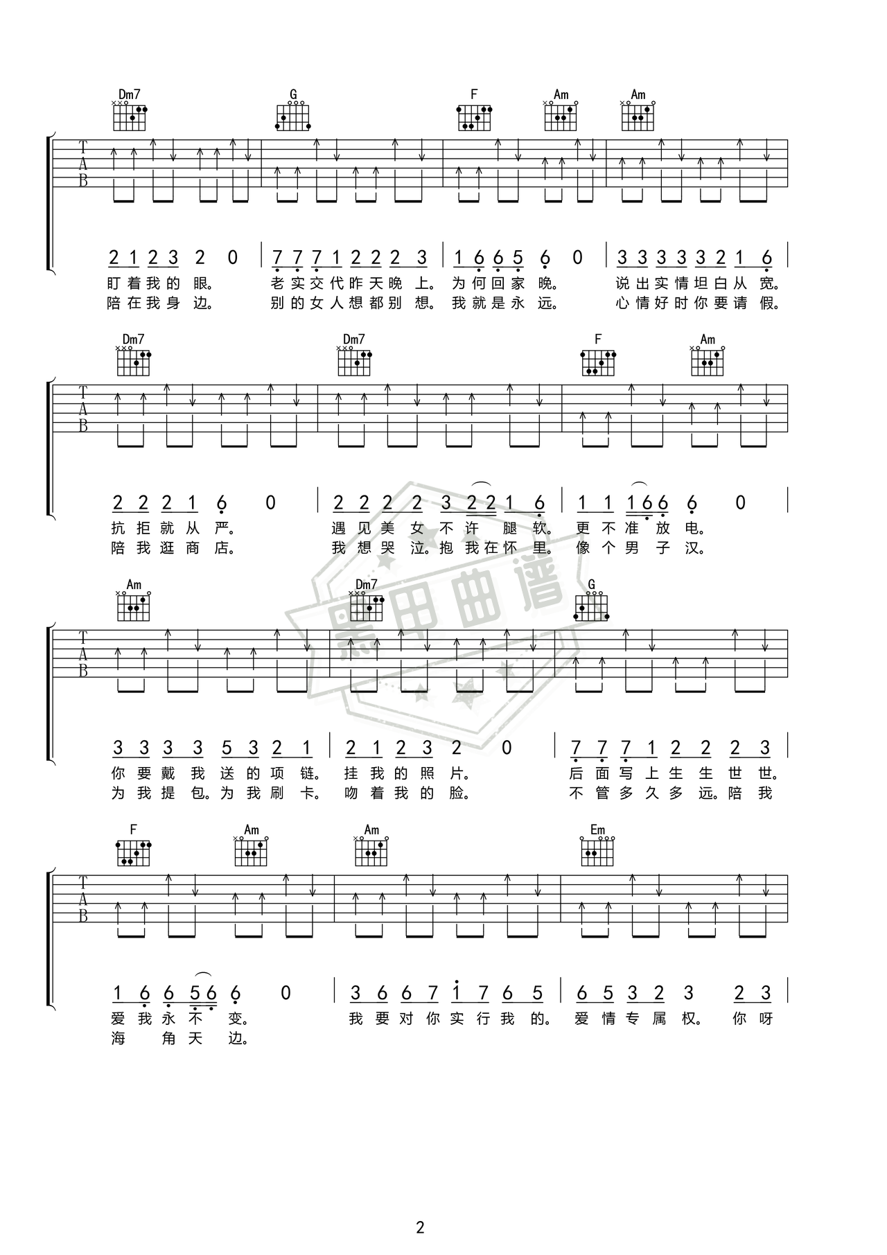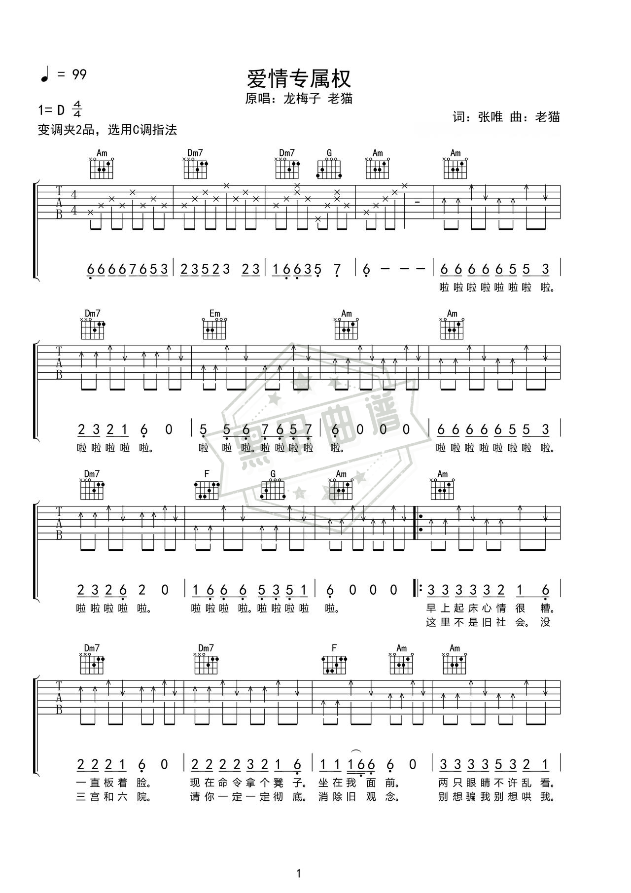 以下是吉他简谱《爱情专属权》b调弹唱谱曲谱的部分内容以及网友对歌曲的评价哦,喜欢的朋友关注我们获得完整的曲谱!