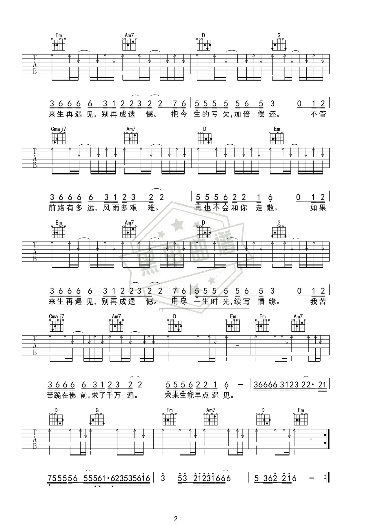 以下是吉他简谱《来生别再成遗憾》f调弹唱谱曲谱的部分内容以及网友对歌曲的评价哦,喜欢的朋友关注我们获得完整的曲谱!