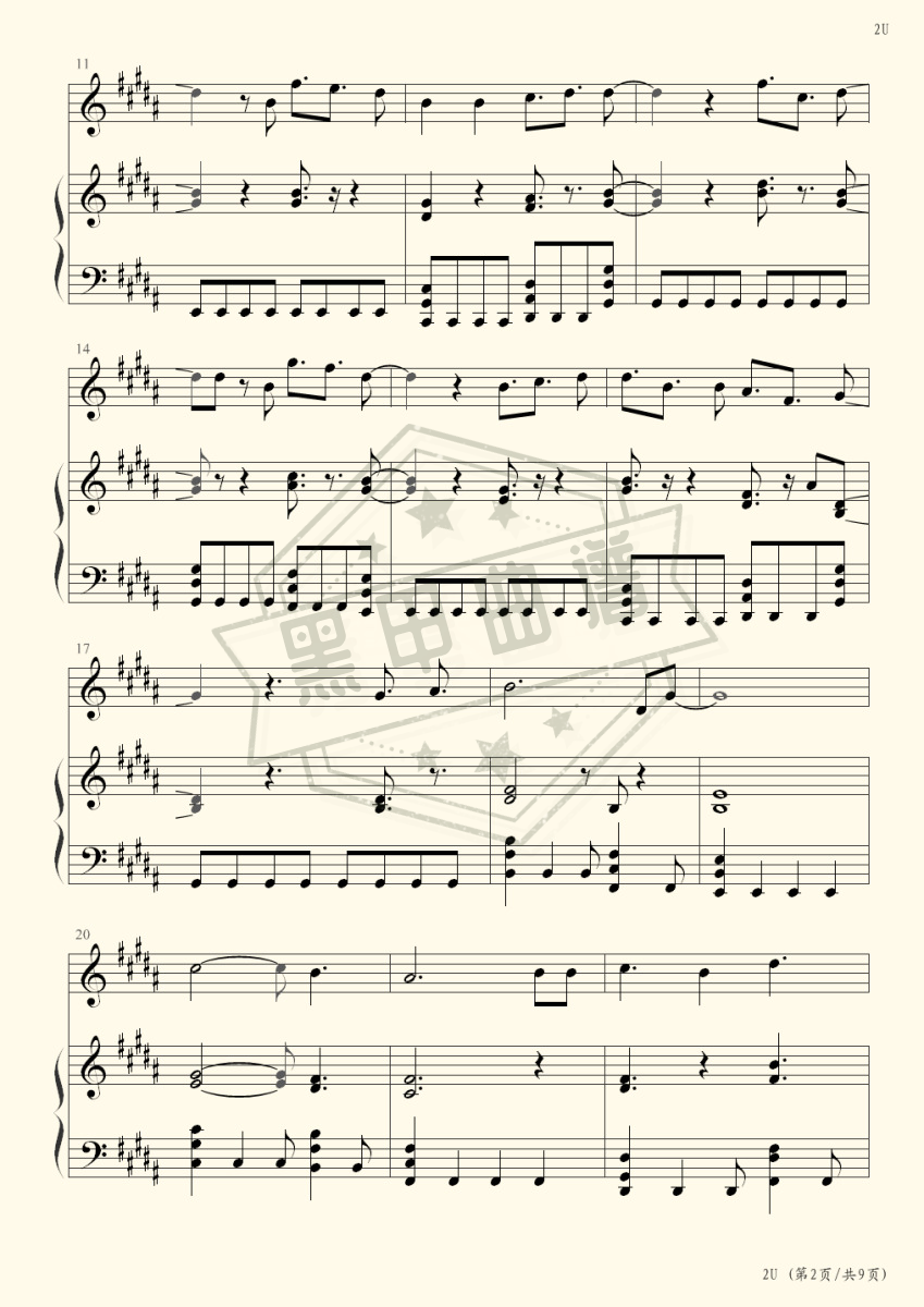 2U (feat. Justin Bieber)_钢琴谱:
