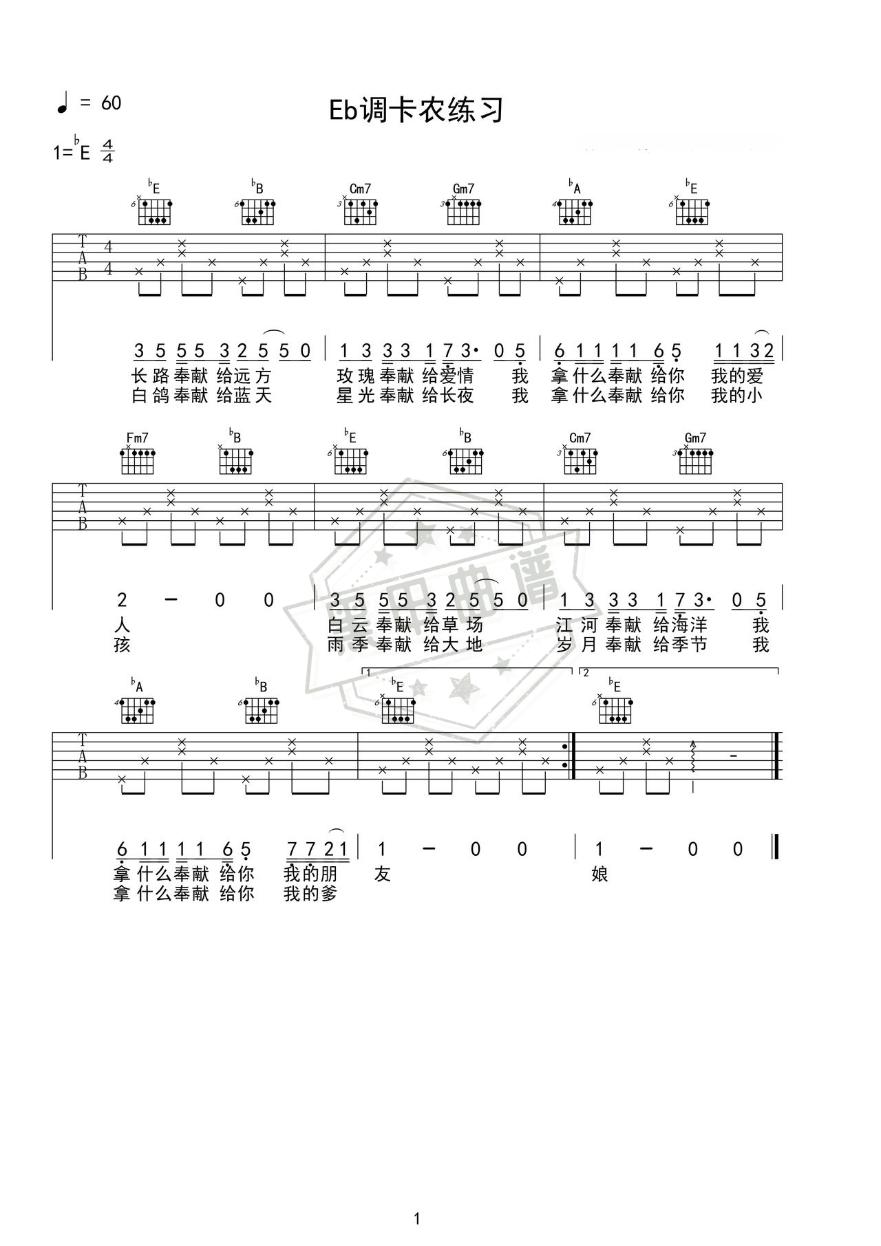 以下是吉他简谱《Eb调卡农练习》Eb调弹唱谱曲谱的部分内容以及网友对歌曲的评价哦,喜欢的朋友关注我们获得完整的曲谱!